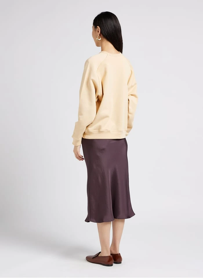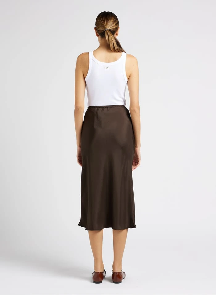 Halflange, soepelvallende, satijnen rok by Soeur voor Dames.