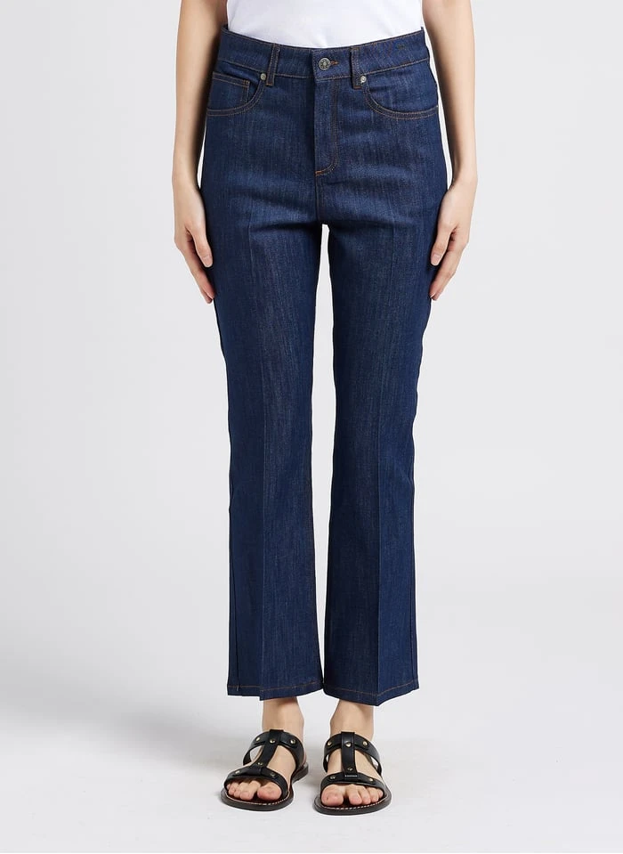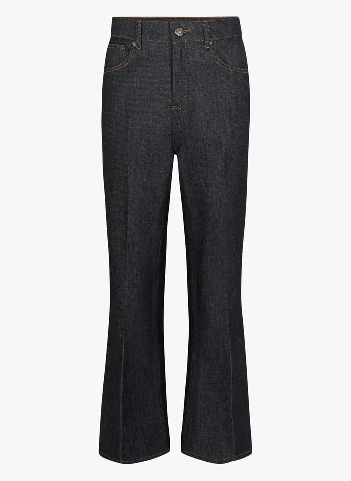Dit model wordt aangeboden met T-shirt met ronde hals katoenblend by SOEUR, Platte, leren slippers by SOEUR