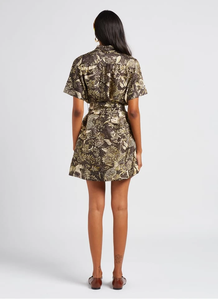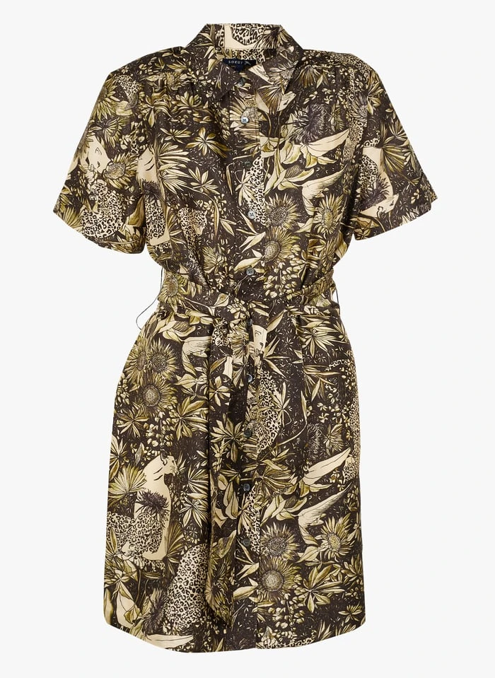 Korte, zijden jurk met klassieke kraag en print by Soeur voor Dames.