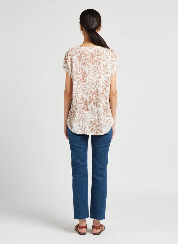 Dit model wordt aangeboden met Top met V-hals en print linnenblend by MAJESTIC FILATURES