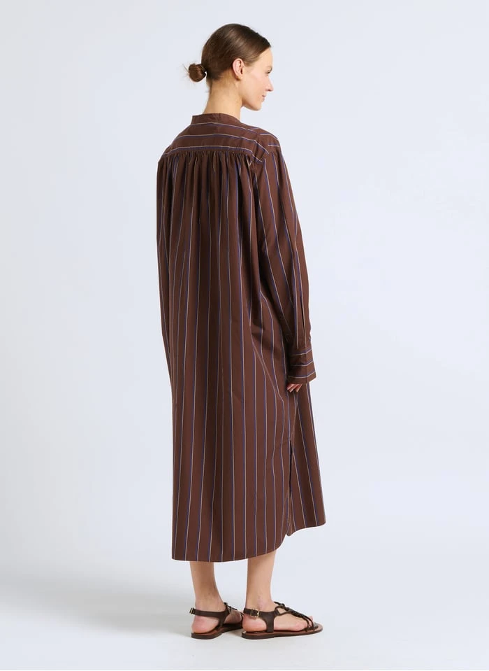 Lange, gestreepte jurk van katoenpopeline by Soeur voor Dames.