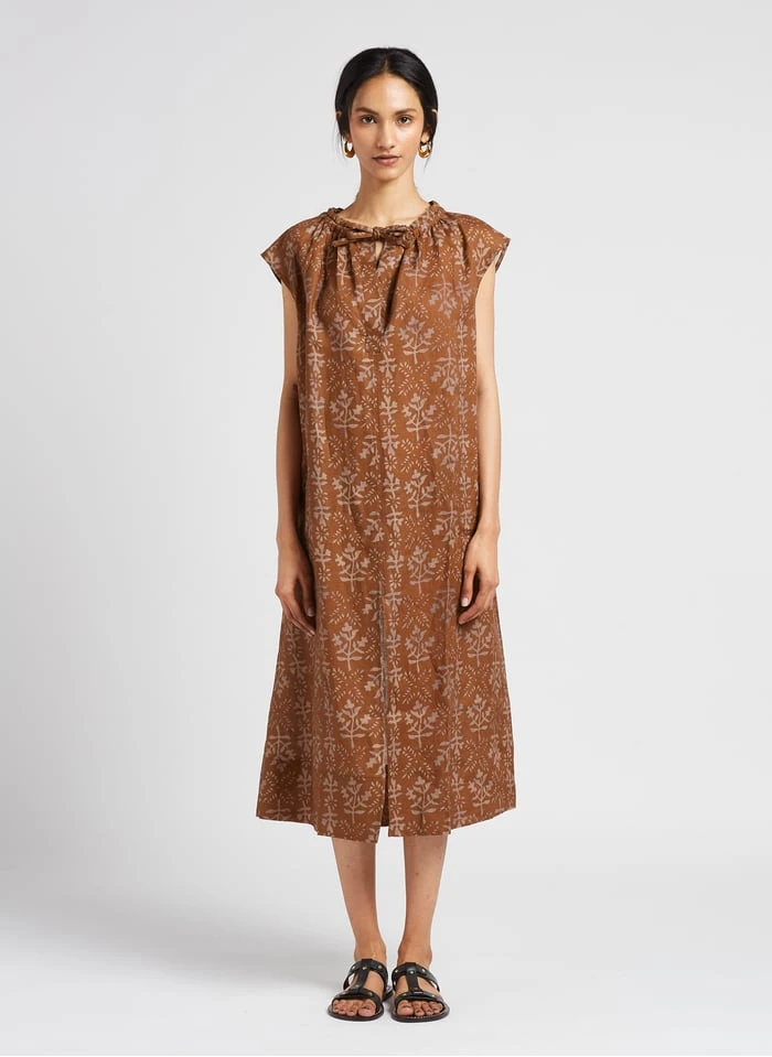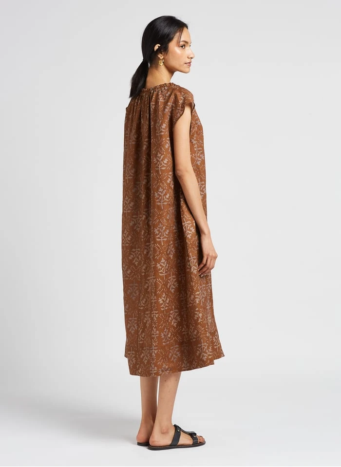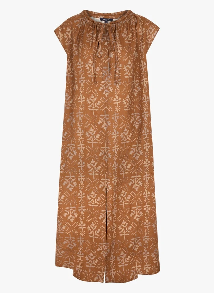 Halflange, linnen jurk met tuniekhals en print by Soeur voor Dames.