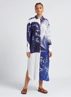 Dit model wordt aangeboden met Katoenen blouse met ronde hals en geborduurde bloemen by ANTIK BATIK, Lange, 100 katoenen rok met plooien by TWINSET